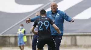 89' - Драган Михайлович бе уцелен със запалка от фен на домакините докато се канеше да изпълни тъч и последва кратка разправия, а в крайна сметка "синият" бранител бе декориран в жълто.