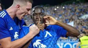 Впоследствие французинът стана всеобщ "син" любимец с изравнителното си попадение в първия мач с Айнтрахт от плейофите за влизане в групите на Лига на конференциите.