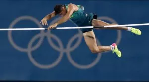 Огита докосна пръта с крака, но все още изглеждаше, че има шанс той да остане на мястото си и скокът да е успешен.