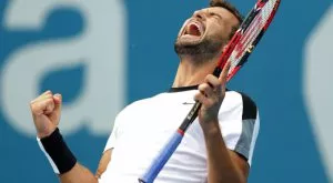 Димитров се мобилизира и изравни резултата 5-5, но японецът направи пробив, след което го затвърди и спечели сета. Българинът изоставаше и във втория сет, но успя да стигне до тайбрек.