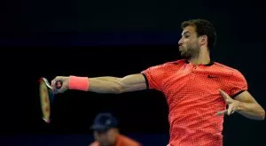 Делпо първо бе привикан на мрежата с перфектна къса топка, а след това и бе прехвърлен. Той обаче не се отказа, догони топката и прехвърлящ хот-дог спечели точката и изправи всички на корта на крака.