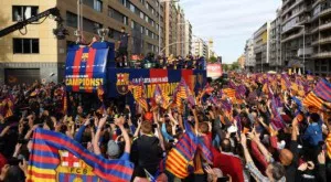 Снощи в каталунската столица отборът и треньорският щаб на Барселона празнуваха своя златен дубъл с шампионски парад. Това бе съпроводено с много гърмежи конфети. При избухването на единия сноп от конфети едно от новите попълнения в тима - Йери Мина, толкова се стресна, че едва не изпадна от автория етаж на автобуса.