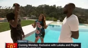 "Daily Mail" отбеляза, че дори когато тренира, Погба успява да отдели внимание на блондинката, като се закача с нея и я прегръща от време на време.