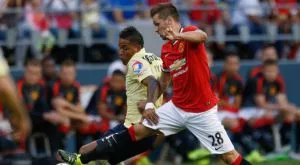Бастиан Швайнщайгер взе участие в контролата на "червените дяволи" с Клуб Америка, спечелена от английския тим с 1:0.