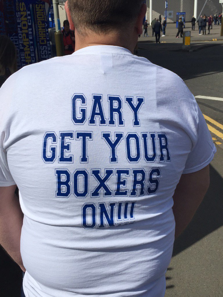Стотици фенове облякоха тениски с надпис "Гари, приготви си боксерките", като надеждите на феновете са, че с мача срещу Уест Хям Лестър ще направи още една крачка към титлата в Англия.