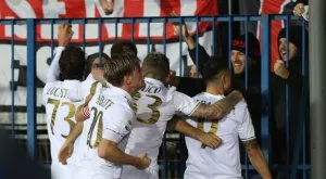 Изненадващо гостите поведоха в 26-ата минута с хубав изстрел на Фалчинели, но 21-годишният хърватин Марио Пасалич изравни с първия си гол в Калчото при дебюта си сред титулярите.