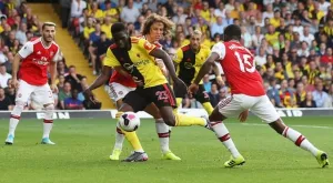 Домакините се хвърлиха в атаки да изравнят, което остави много пространства за Арсенал да атакуват на скорост. Така в 80' при контраатака Кор спря непозволено Дани Себайос и беше изгонен от игра с втори жълт картон. Оттам нататък беше лесно за лондончани, които вкараха нови две попадения чрез Сака и Обамеянг - 0:3.