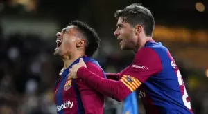 ГОЛ - 2:0 за Барселона! В 48-ата минута Ламин Ямал нахлу по дясното крило, стигна до аутлинията и опита да центрира. Топката се удари в страничната греда и се върна към точката на дузпата, където беше Феран Торес, а бившият играч на Манчестър Сити стреля без забавяне с левия крак и се разписа за втори път в мача.