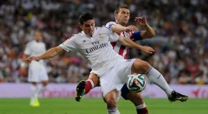На заниманието Кристиано Роналдо успя да мушне топката между краката на новото попълнение Хамес Родригес и след това носителят на Златната топка за 2013 г. се зарадва като малко дете.